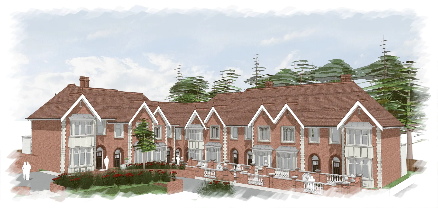 Design for 12 apartments and 8 cottages, specifically designed for those of retirement age. The scheme has been designed in an Arts & Crafts style, in keeping with the local architectural language. Great care and attention has been given to architectural detailing and the choice of quality materials from a pallet common throughout the area.
