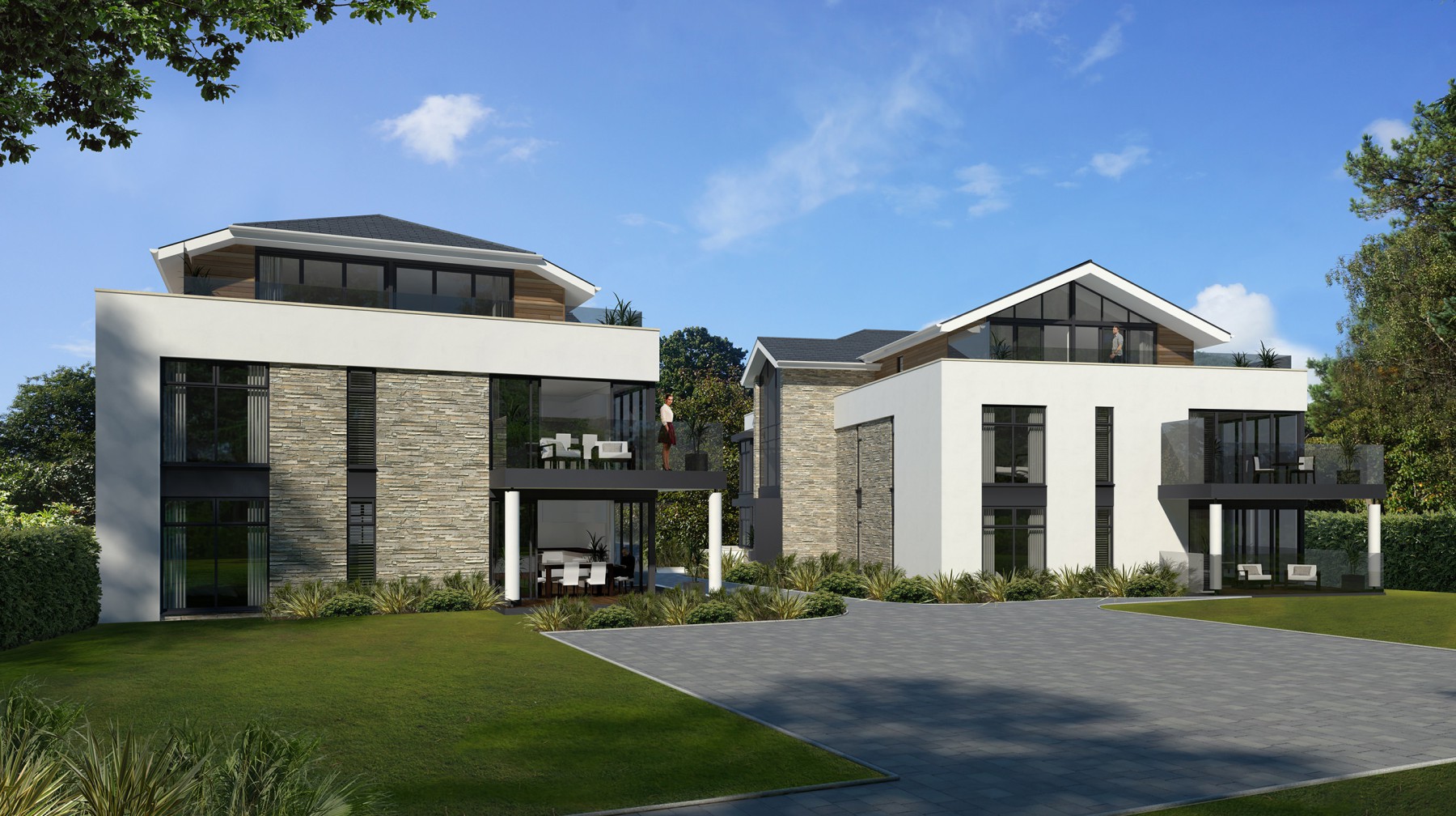 Located on the south side of Weymouth, DJA designed this development of 6 apartments and 2 maisonettes for Anzen Properties Ltd. Situated in a beautiful wooded cul-de-sac and with stunning toward the sea and Portland, the design is traditional with a contemporary edge, with clean lines, a pitched roof, and contemporary materials that are subtle and from a muted palette.