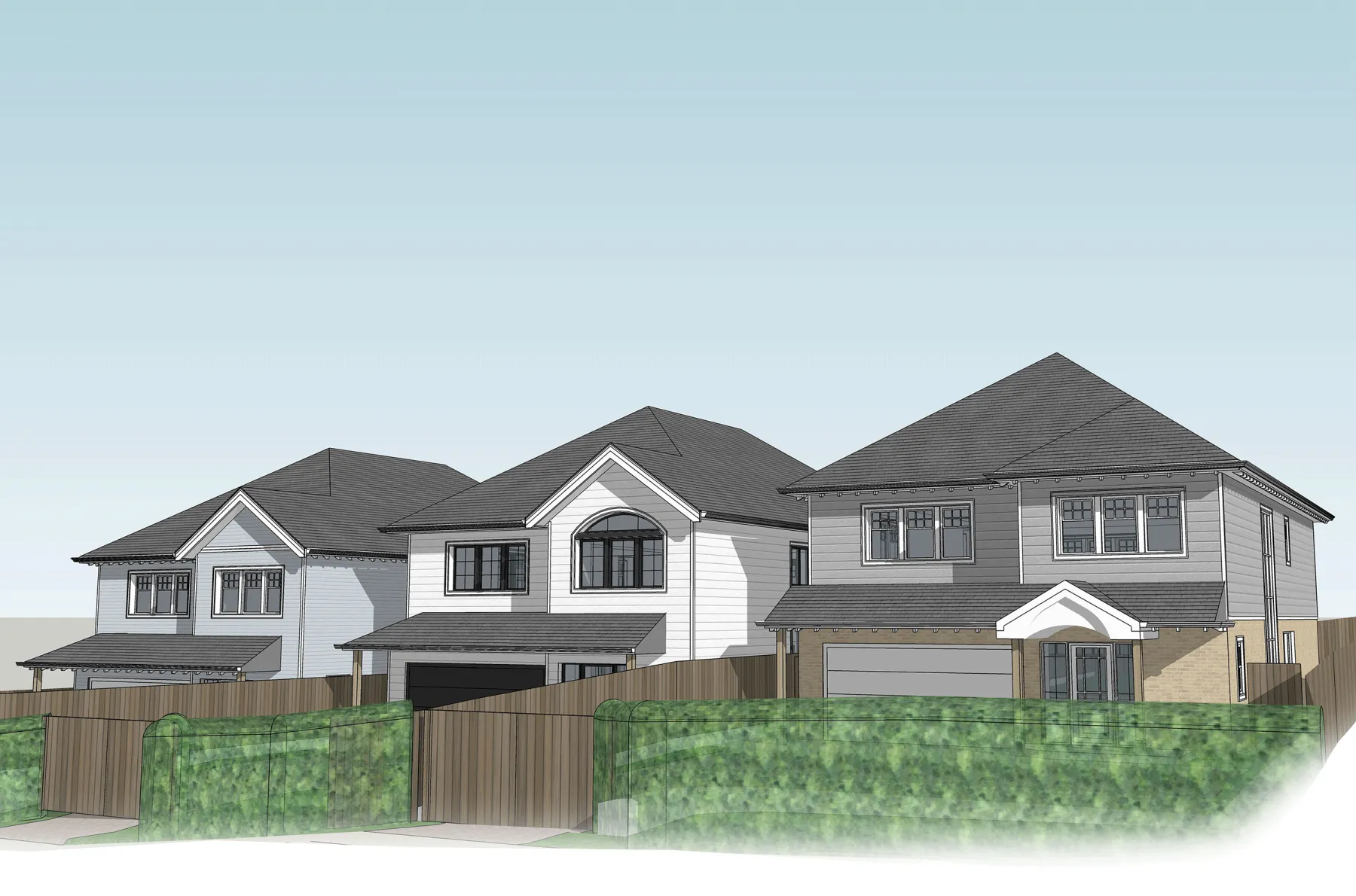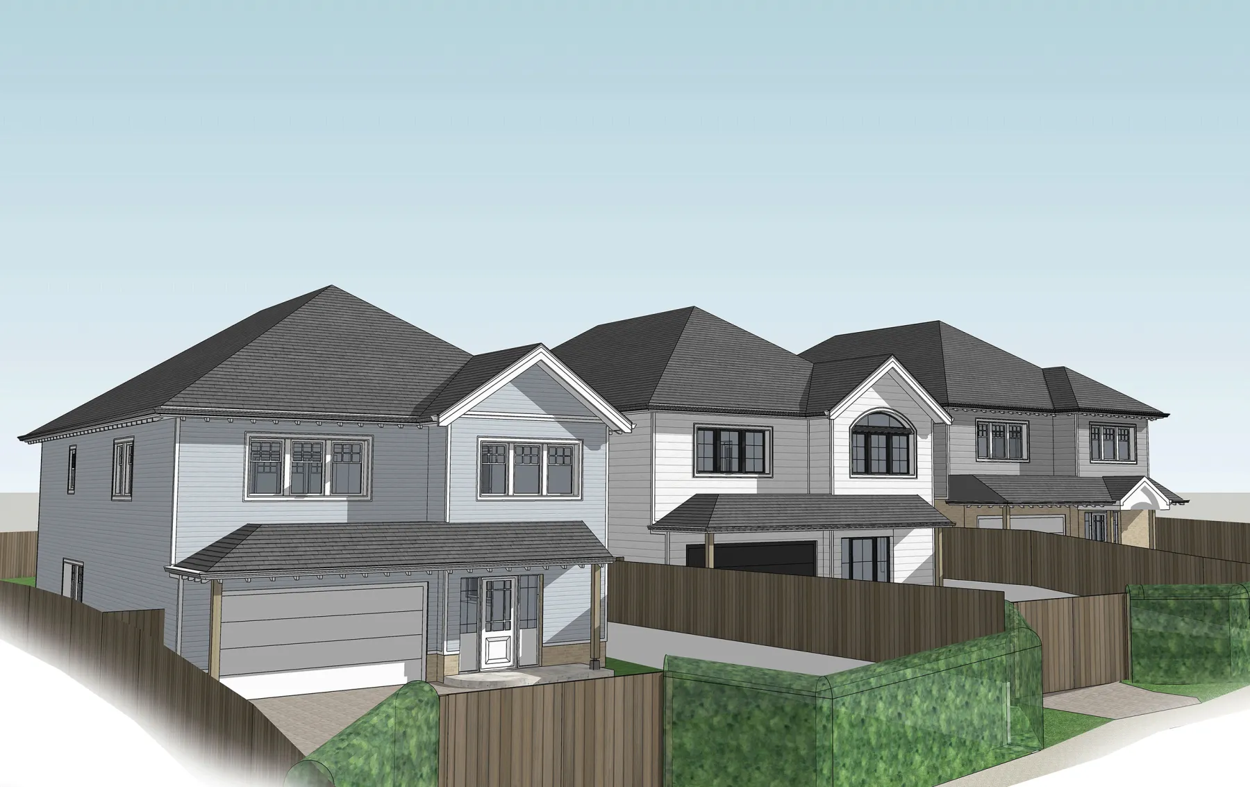 Another recent planning approval – this time for 3 detached houses located in the sought-after Penn Hill area in Poole, for renowned developers Towncourt Homes. Each house offers a spacious and dynamic layout and the thoughtful architectural design that we are known for.
