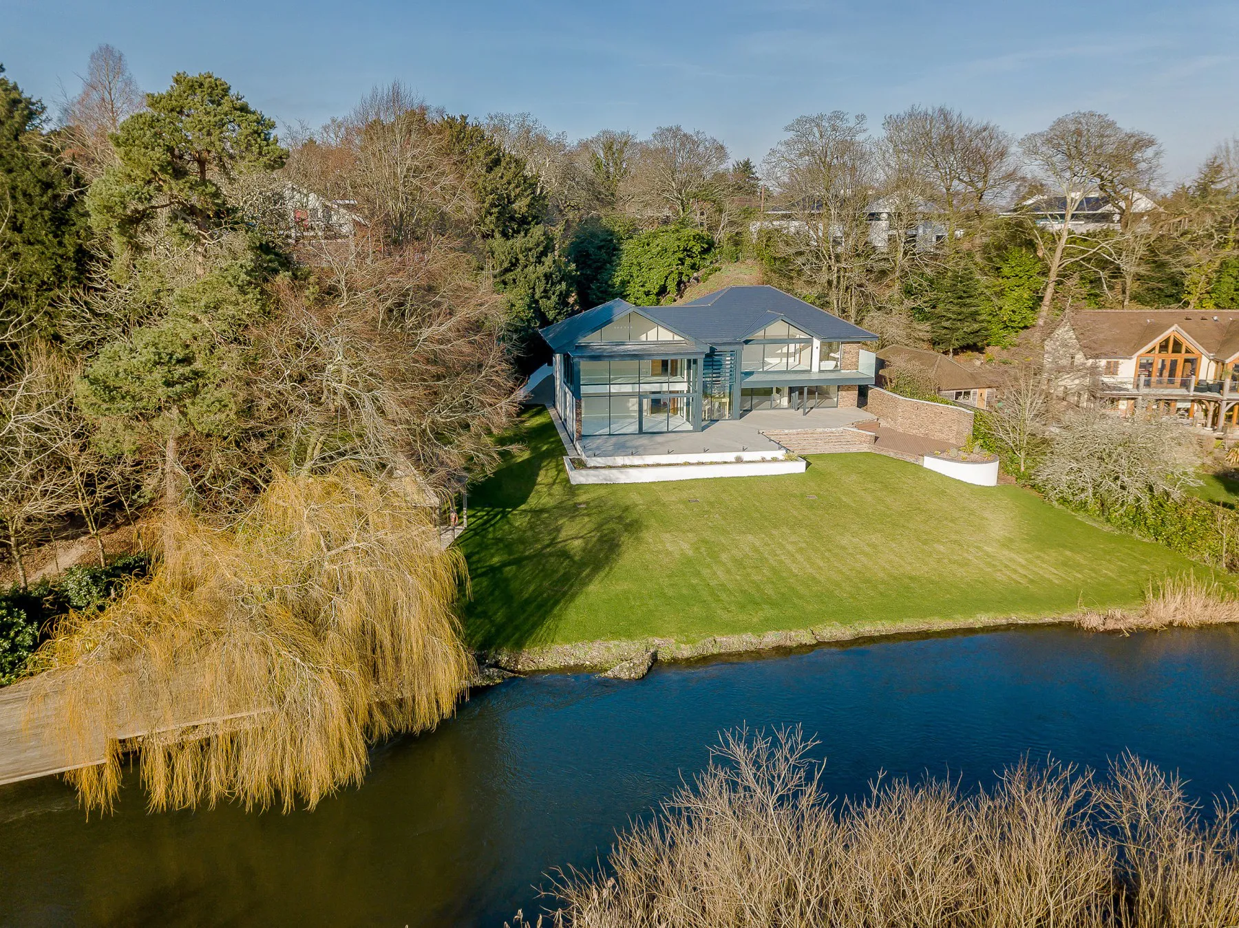 Located in a beautiful spot on the banks of the River Avon, The Dell is a breathtaking house designed by David James Architects. Photographs courtesy of Fine & Country New Forest.