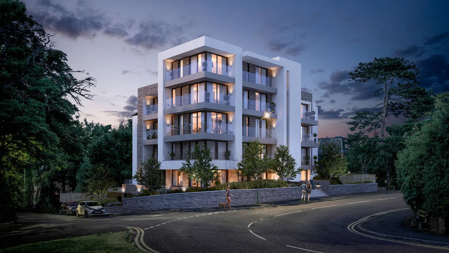 Apartment block in Bournemouth Town Centre. The design consists of 19 apartments, with basement car parking.