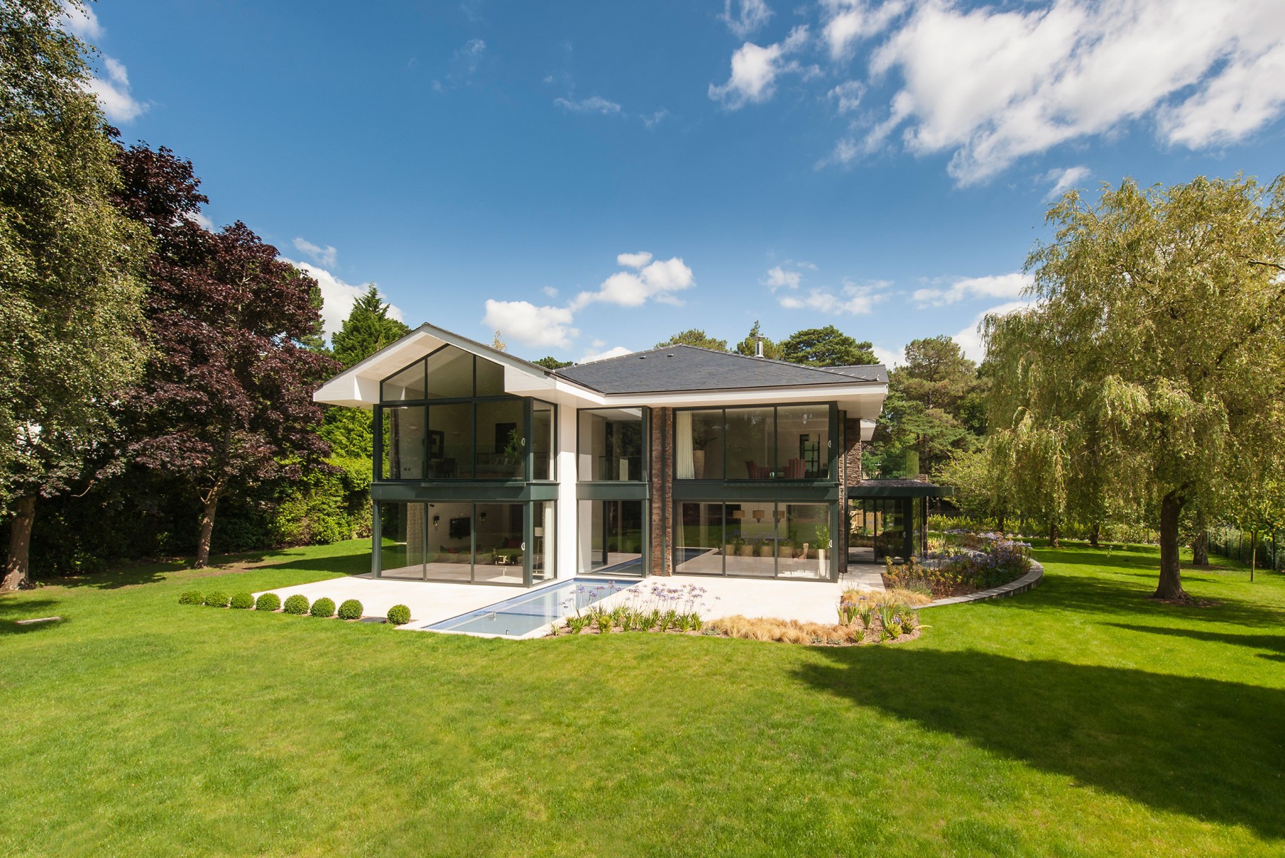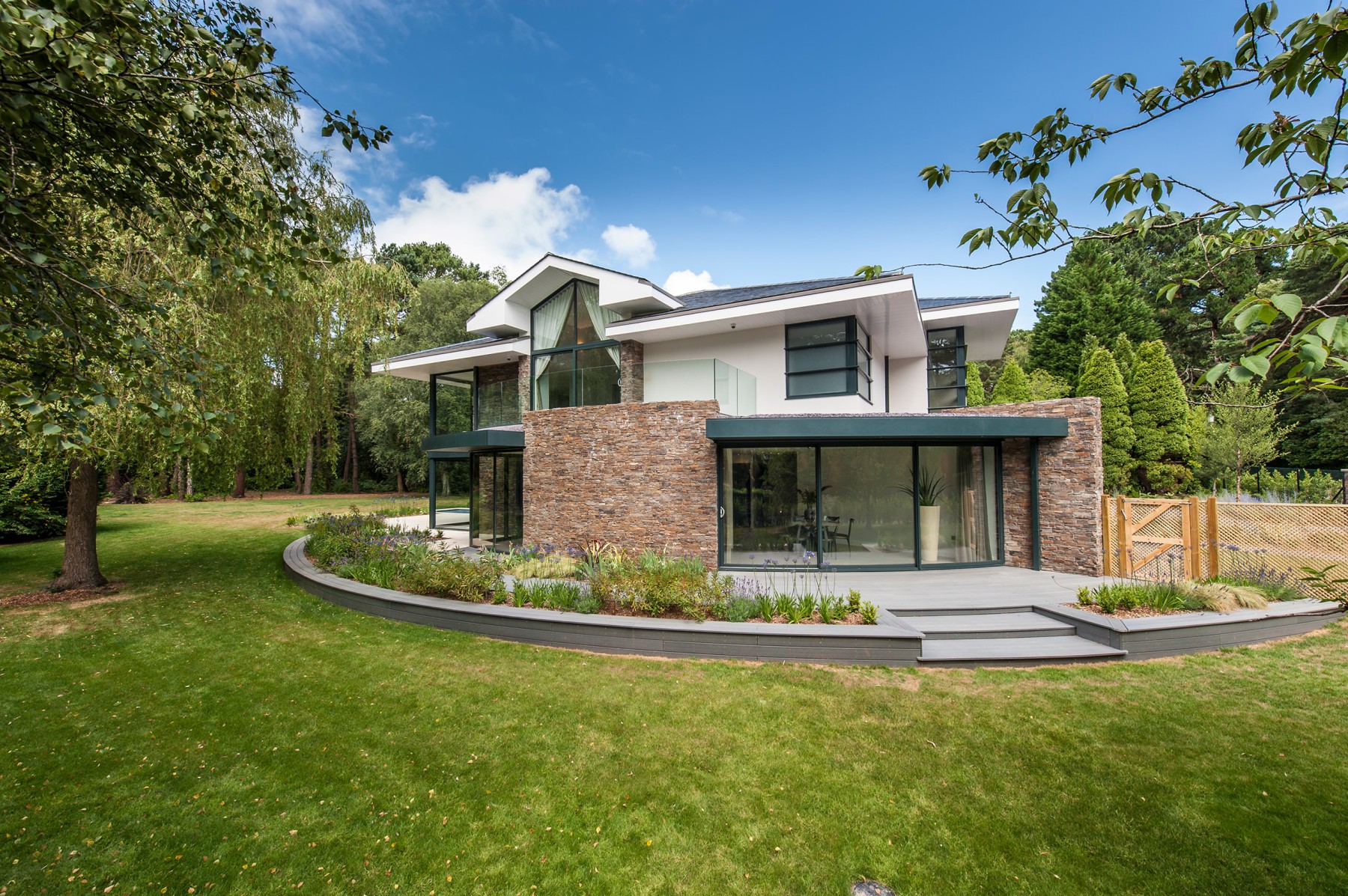 Stunning DJA designed house in Branksome Park, Poole. We undertook the design & planning, building regulations, interior design, tender and project management, creating a stunning, unique house that appears to float over the landscape.