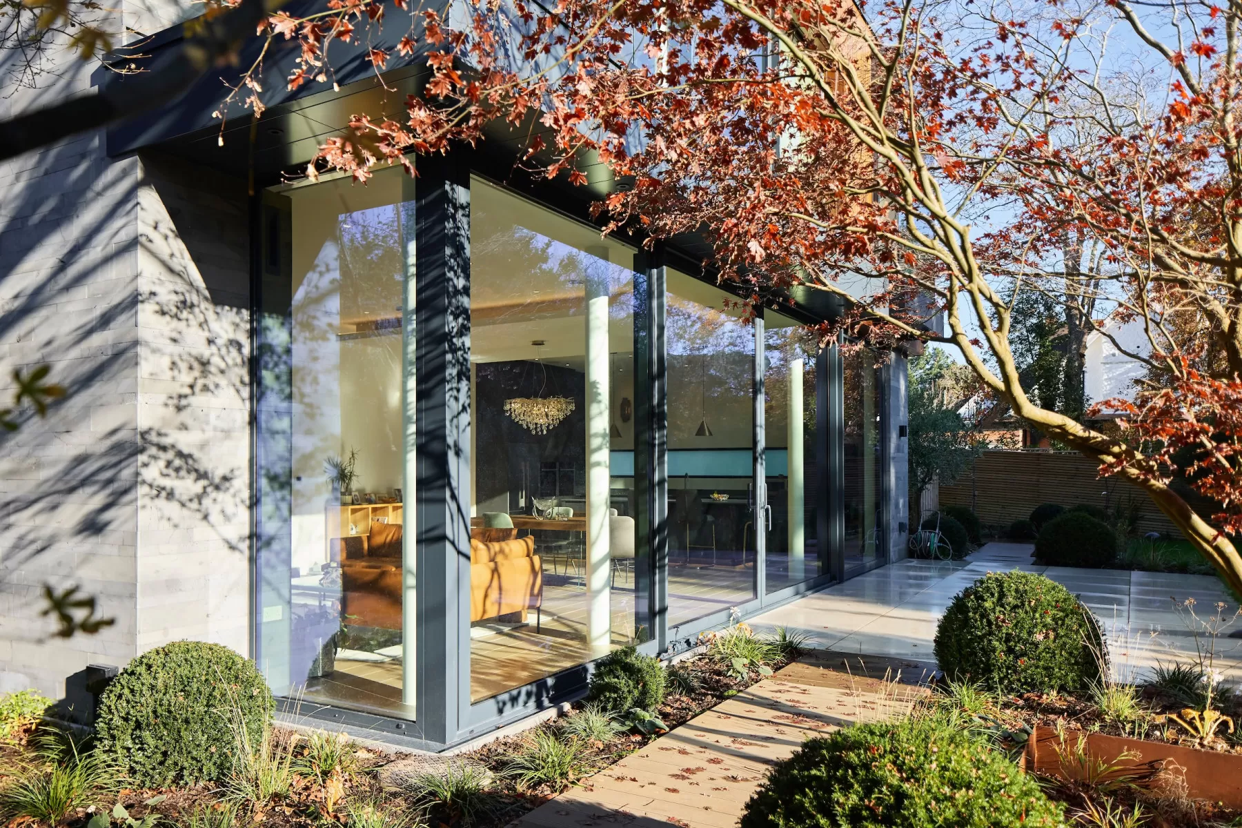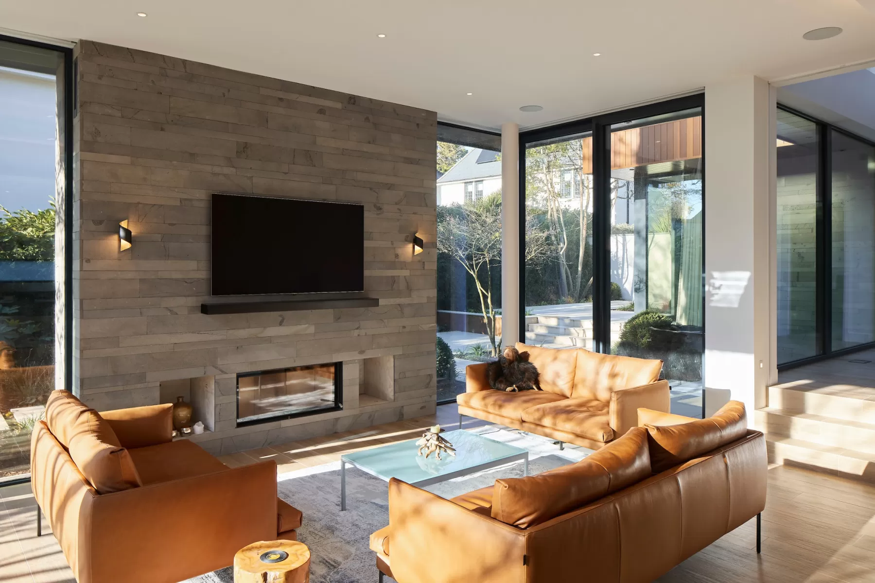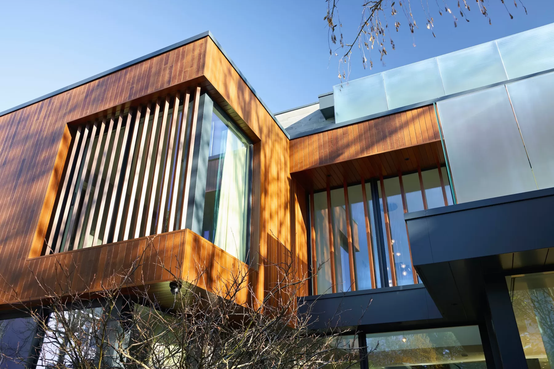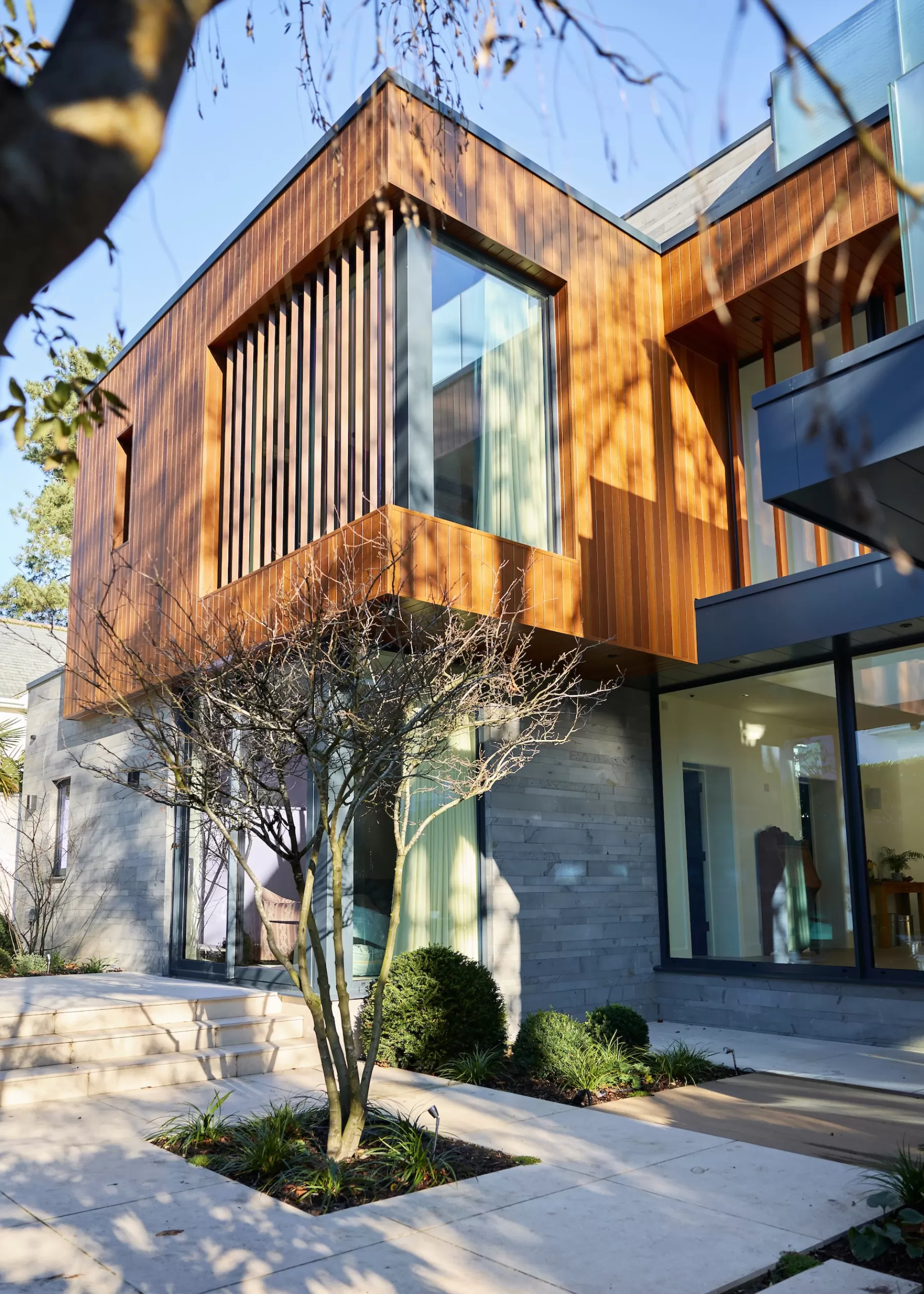 This stunning residence is located on a corner plot in the sought after Canford Cliffs area of Poole. We undertook the design & planning, building regulations, interior detailing and project management for this site. Approved at committee, the members commended our design which although contemporary, sits effortlessly within the street scene complementing the environment with natural external finishes of timber and stone cladding. This project was expertly delivered by Bridgewater Construction.