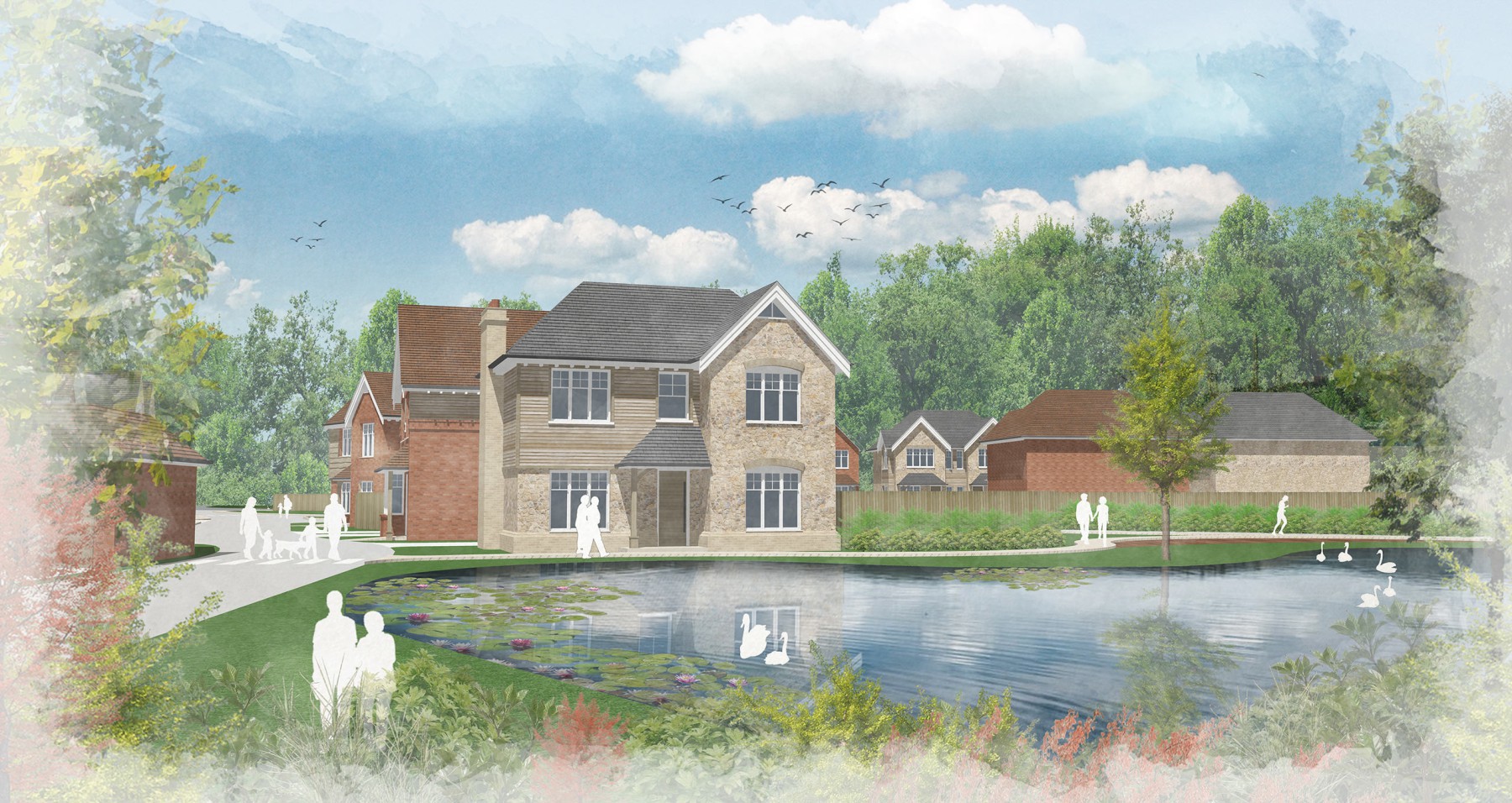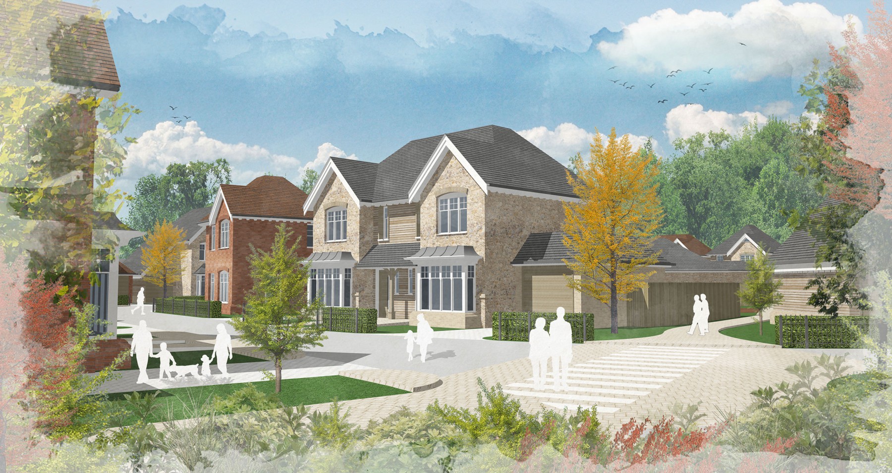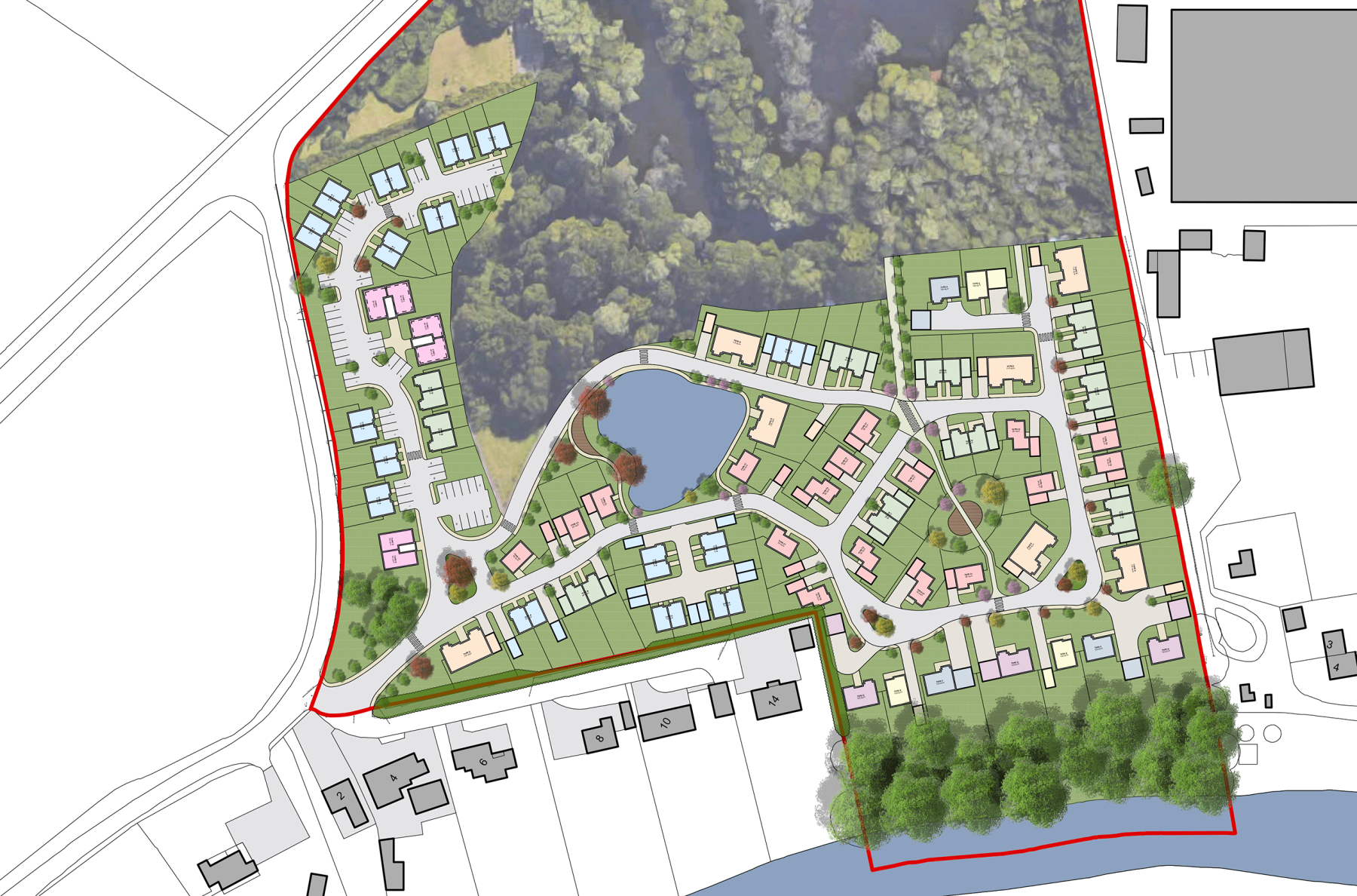 Master plan for large housing scheme comprising a mix of high density 2-3 bed housing, through to low density 4-5 bed accommodation. The site benefits from an extensive area of natural green space, to be maintained and made accessible for use by members of the public. The layout of the houses have been carefully thought out to maximise the occupant's amenities, giving access to private gardens, off road parking, and open countryside.