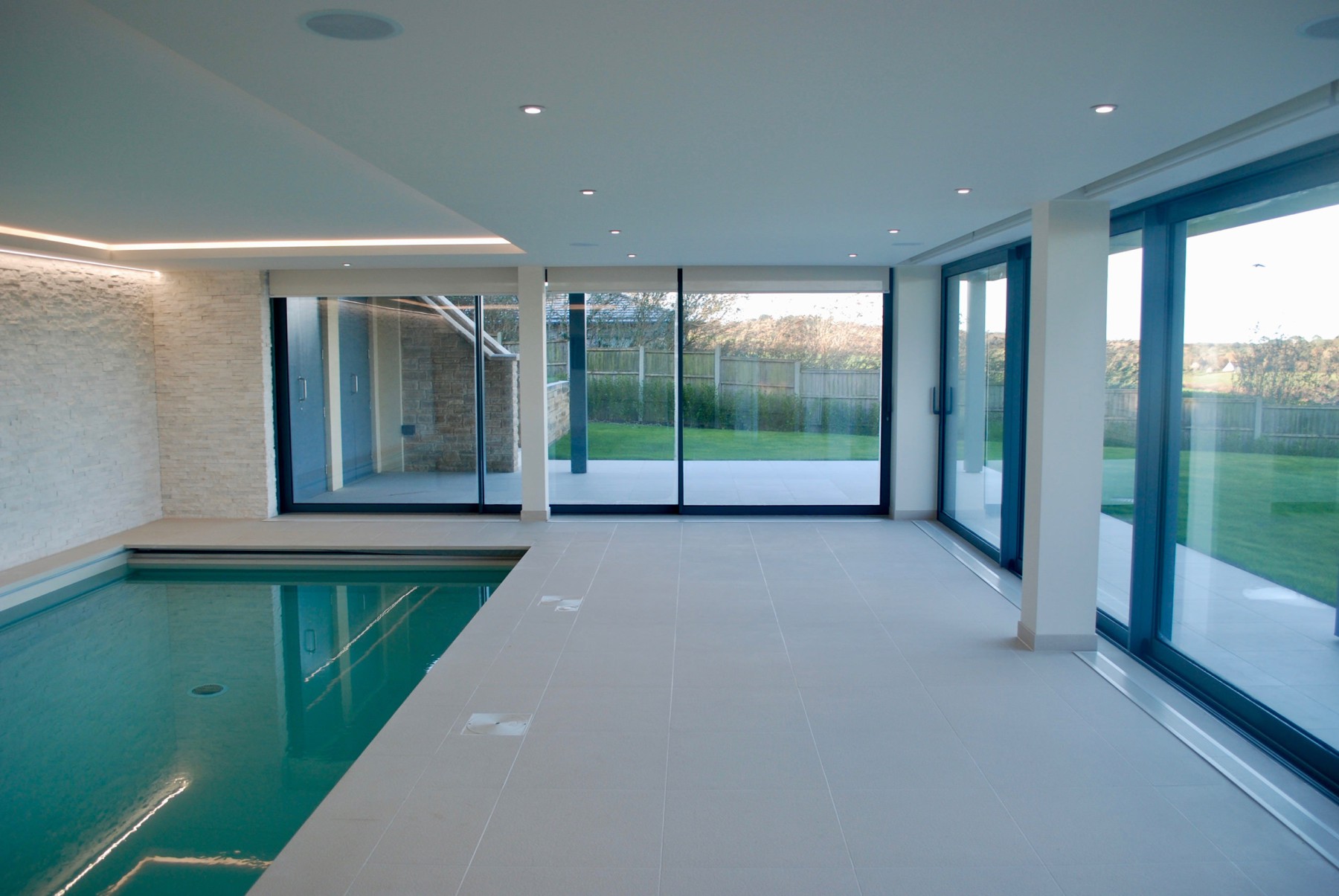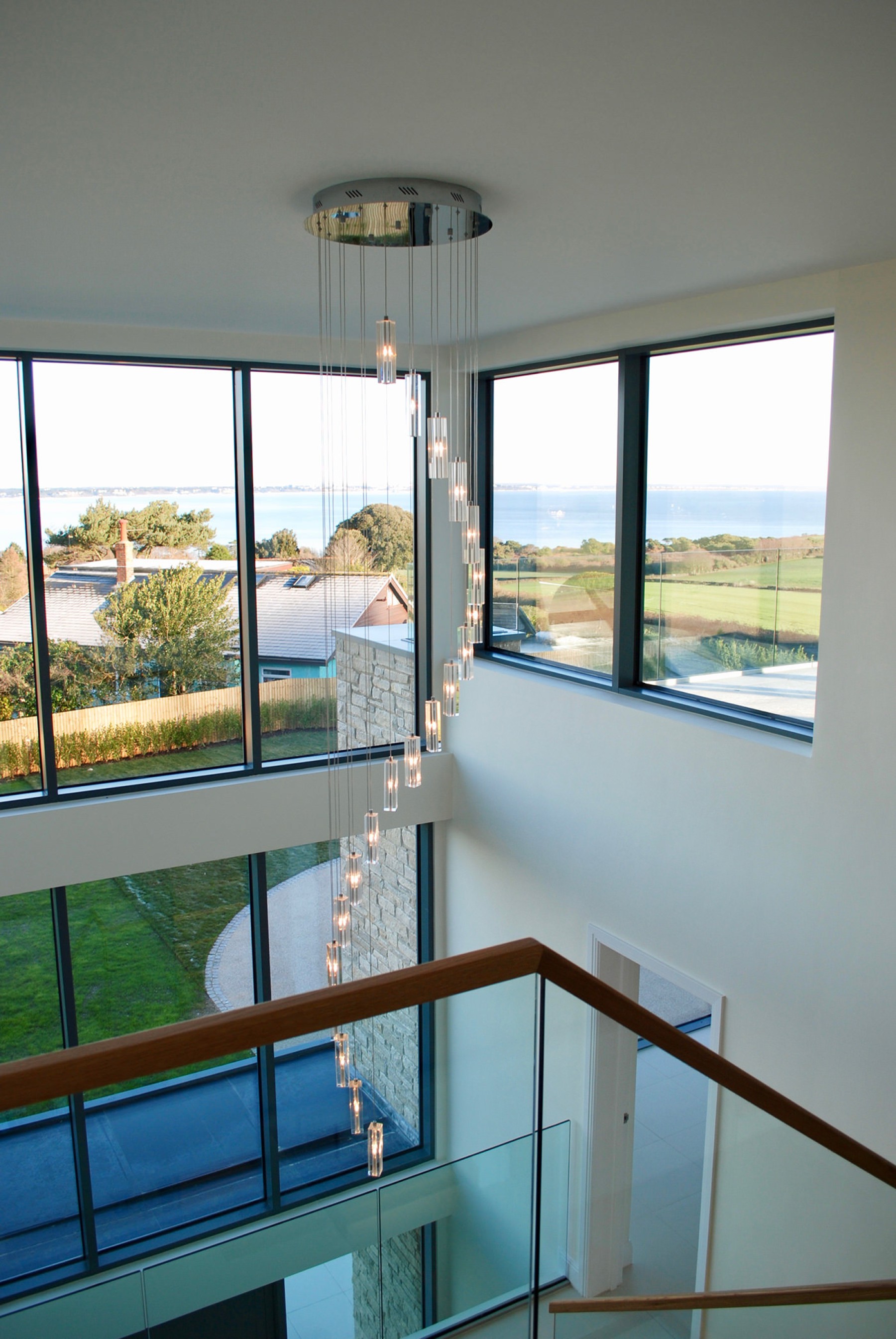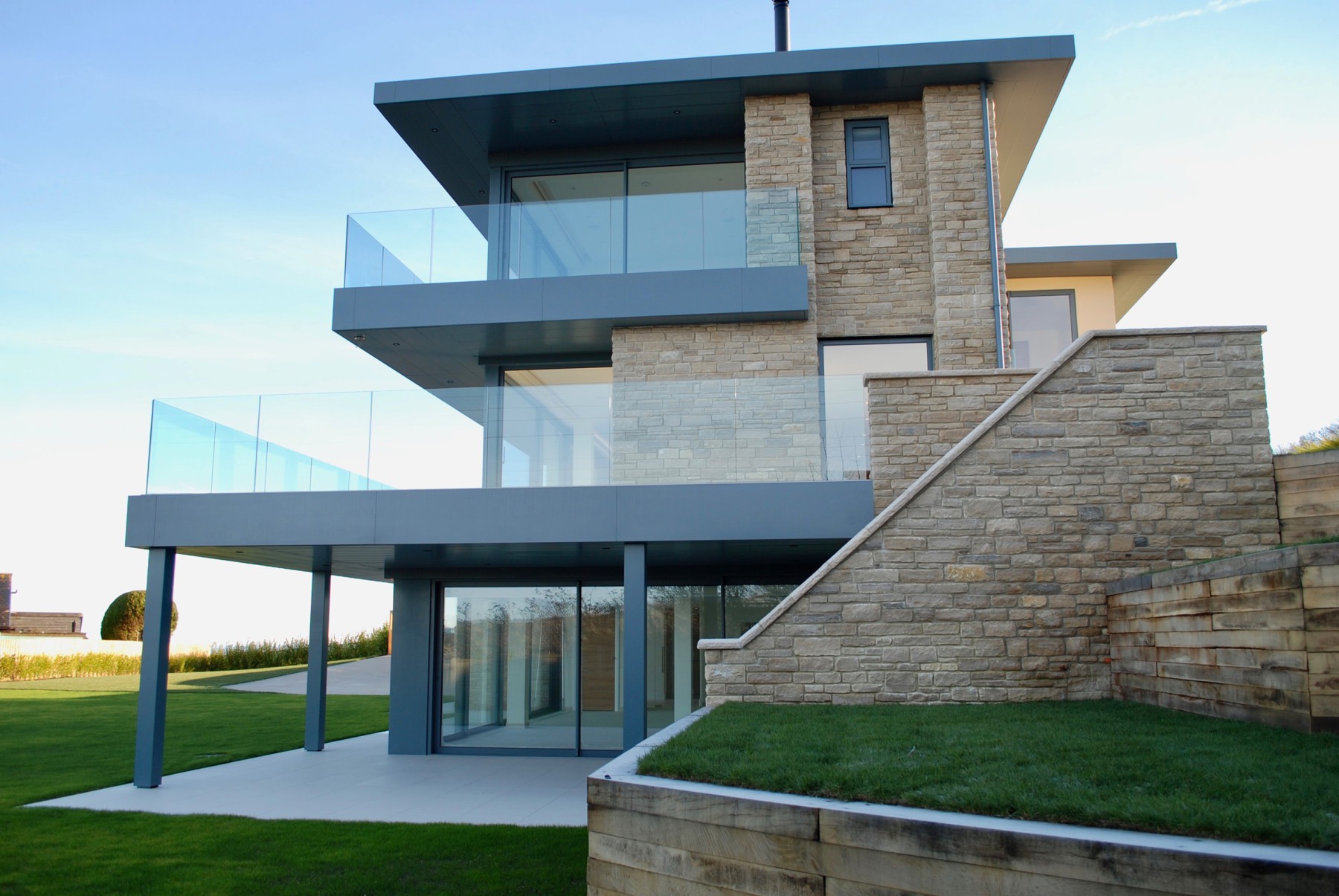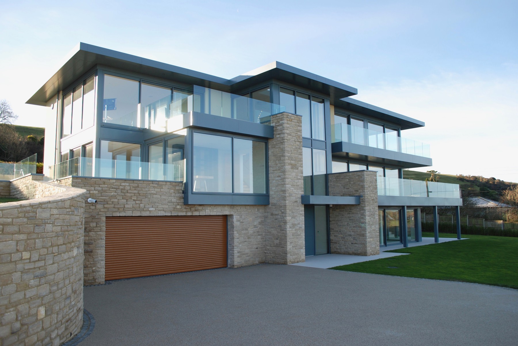 We designed this residence to take full advantage of the breathtaking views from the site. The property is approached via a sweeping drive leading to the striking, predominately glazed front façade, overlooking the gently sloping gardens...