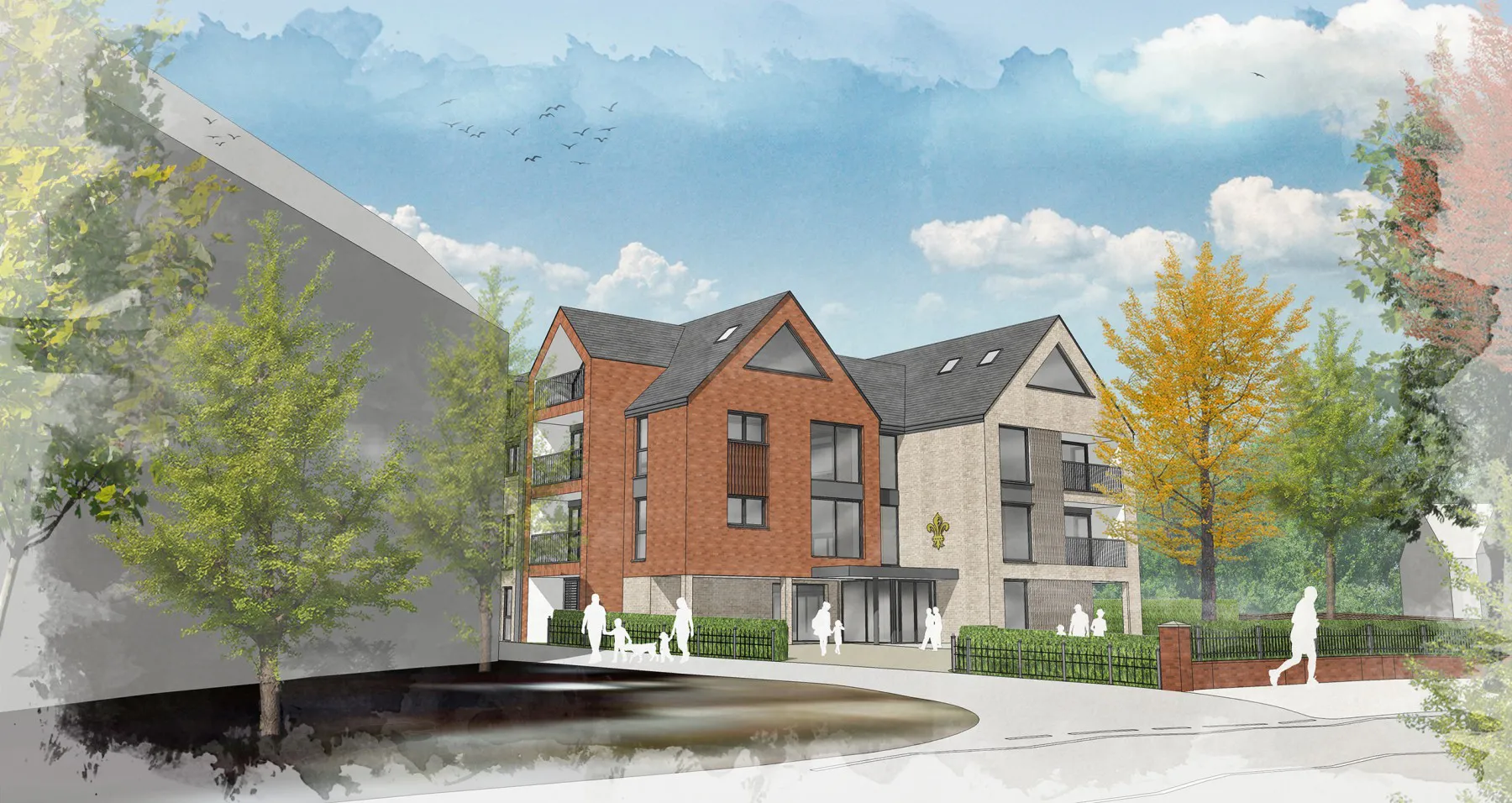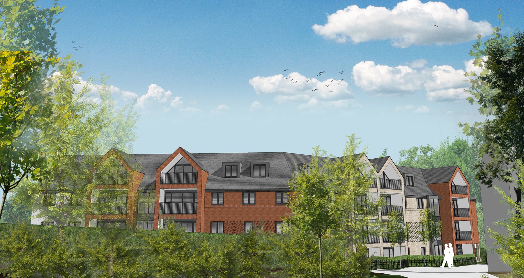 Design for a large retirement scheme comprising 36 apartments, located in Hertfordshire. The design is of a traditional form, to accord with the surrounding architecture, with contemporary detailing. Accommodation has been designed to ensure the layouts are ergonomic and maintain maximum privacy for the occupants. Massing and bulk has been reduced by the use of roof space for the upper floor apartments.