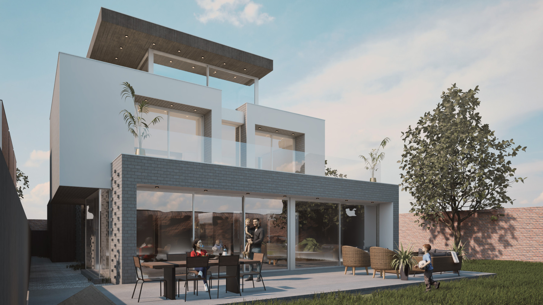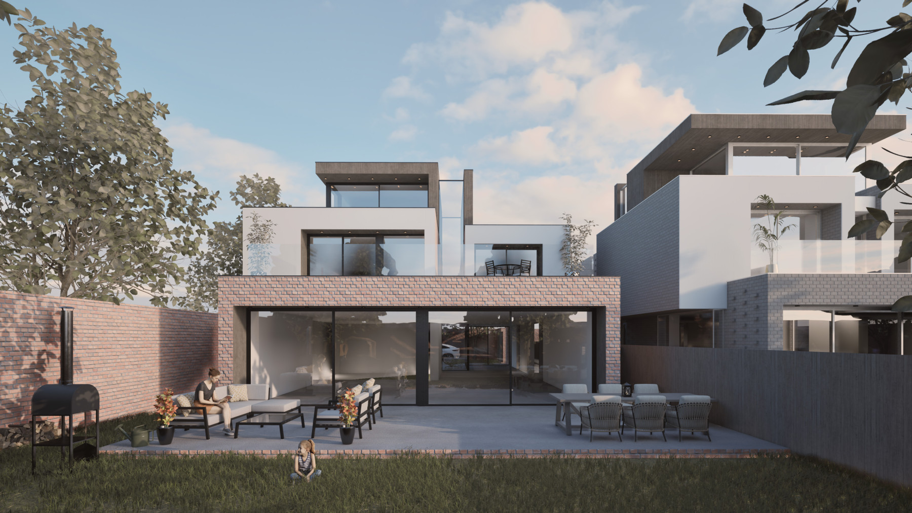 DJA’s design for a pair of contemporary houses located on a sought-after cliff top location on the South Coast, for local developers Addis Homes. Designed to take full advantage of the stunning sea views, these spacious family homes boast integral double garages, large living / entertaining areas and sunrooms to the upper floors. External materials of light coastal brick, red brick, and dark timber cladding complement the coastal setting.