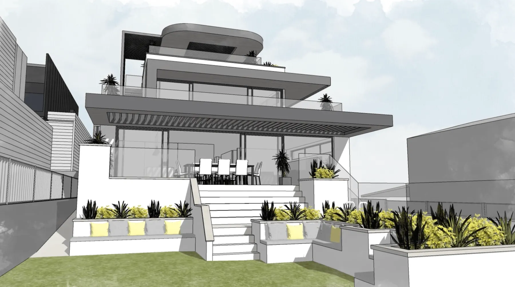 DJA was asked to design this unique contemporary residence in New South wales, Australia. With the accommodation set over 3 floors, the design includes 4 double bedrooms, an integral double garage, outdoor BBQ area and swimming pool/ spa. Set on the beautiful east coast of Australia, the site is a stone’s throw away from the beach.
