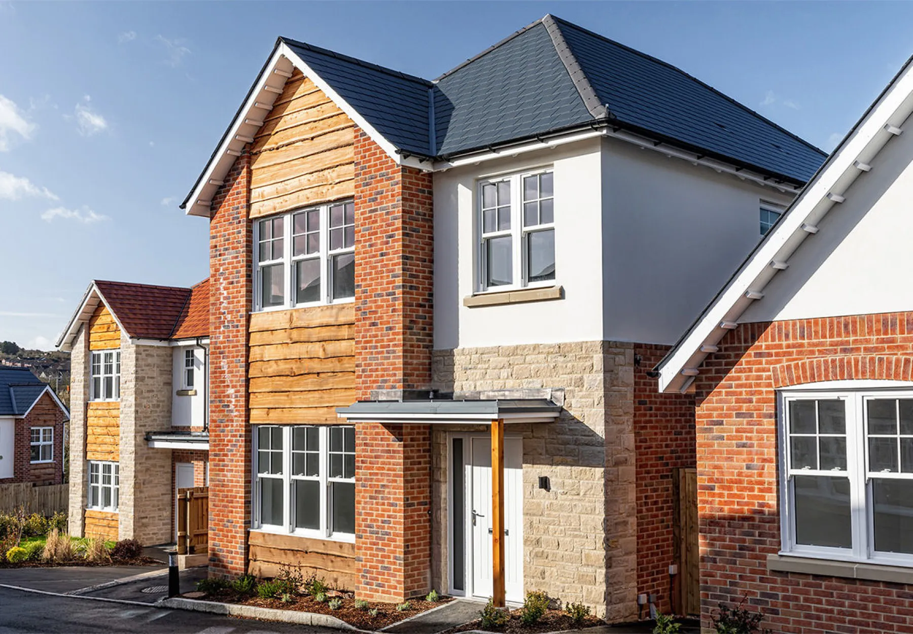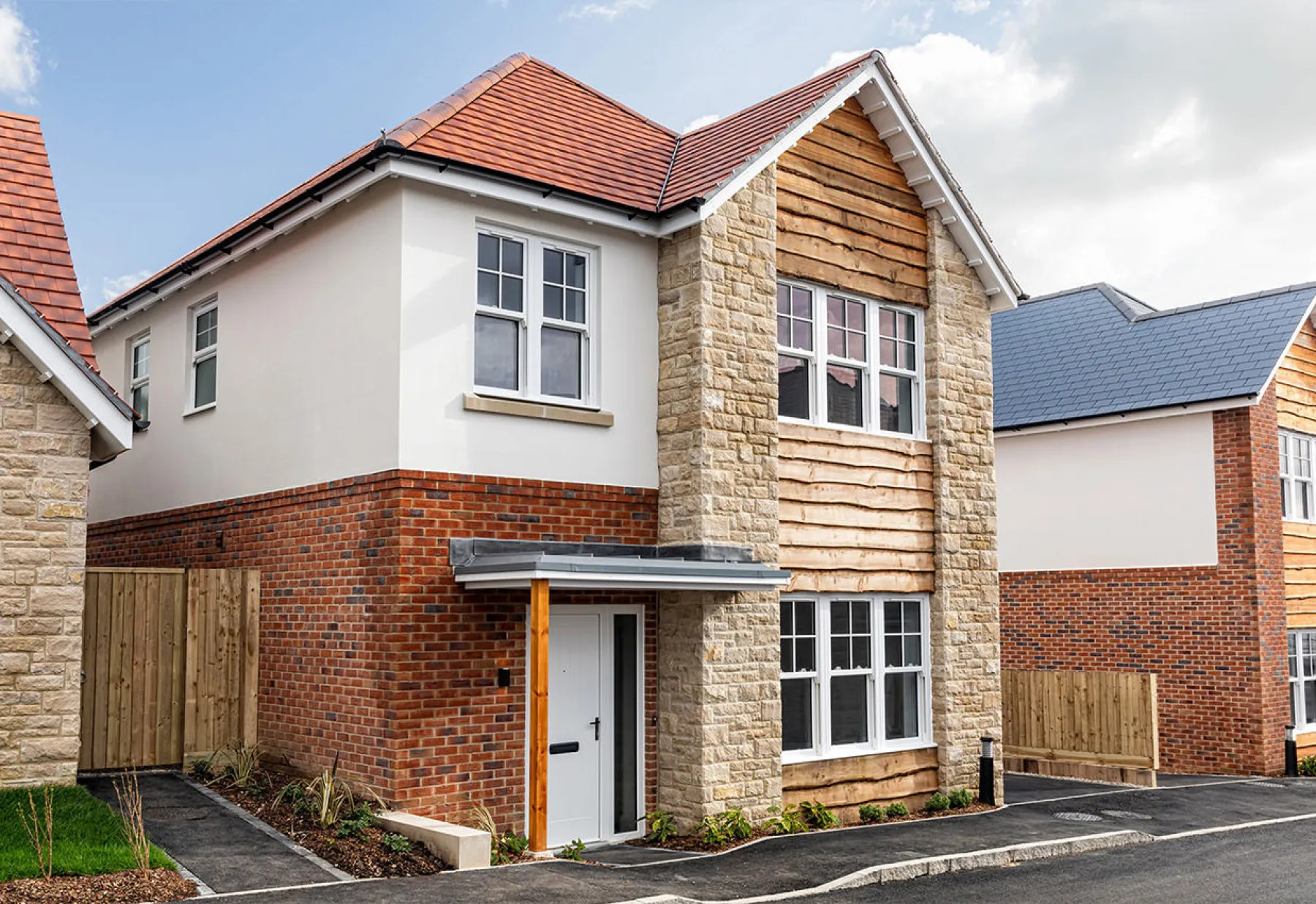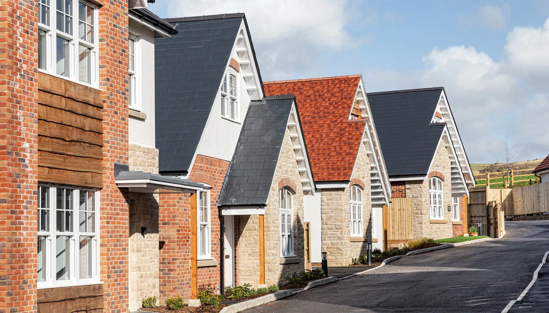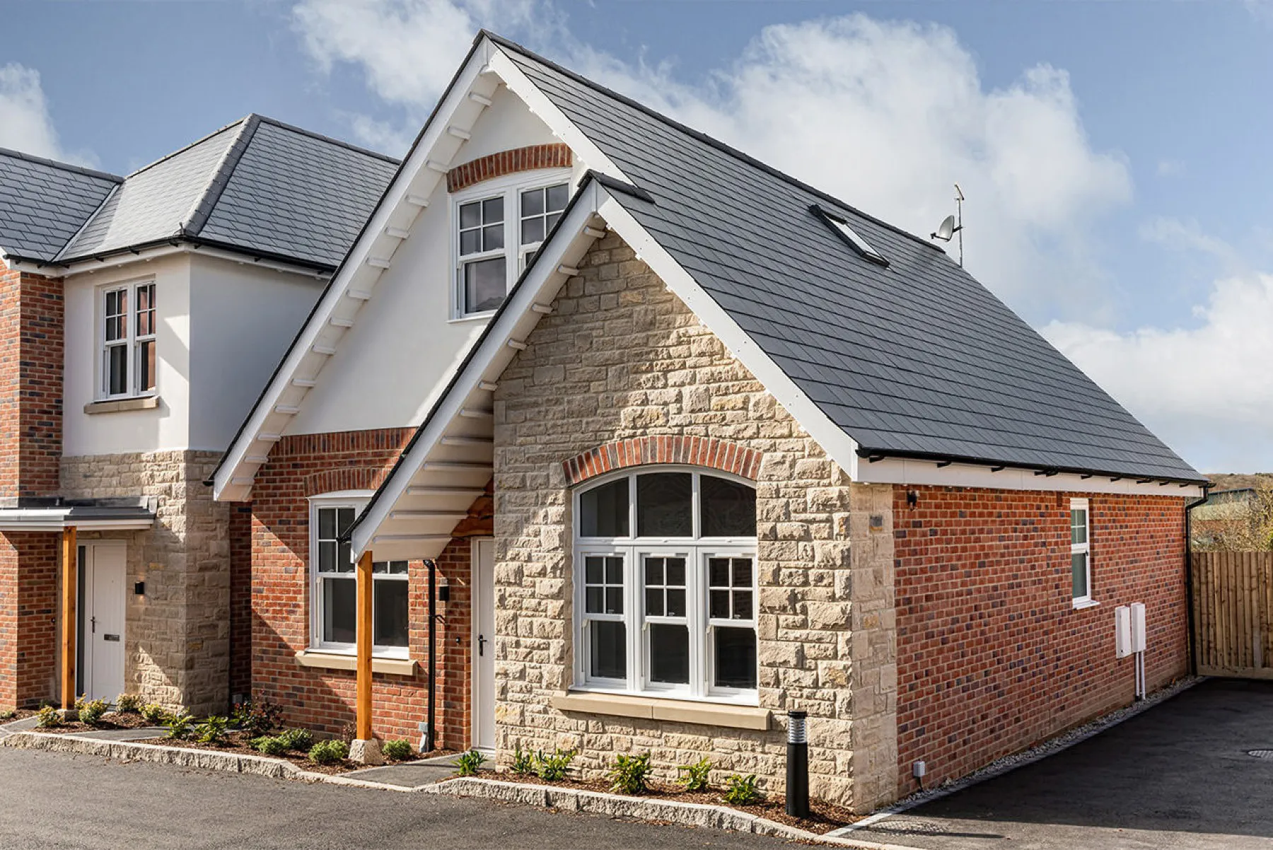 Development of 15 houses and 5 apartments designed by DJA for renowned developers Bayview Developments. The houses have been sympathetically designed using external materials of natural timber, Purbeck Stone, brickwork and contrasting roof tiles. This varied palette creates a collection of distinctive, individual properties.