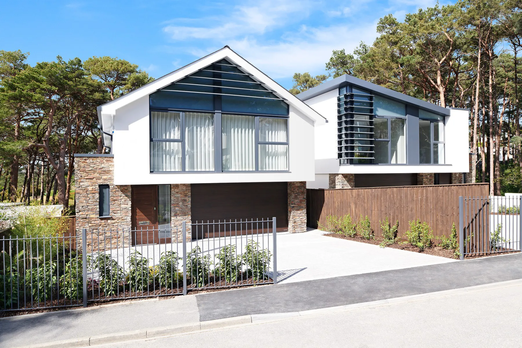 These two stunning houses were designed by DJA for renowned developers Towncourt Homes. Located in Canford Cliffs, these properties were designed to take full advantage of their stunning location, with the layout offering fantastic views across the golf course. Large expanses of floor to ceiling glass create an abundance of natural light, creating bright, uplifting living spaces.